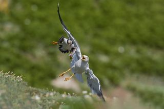 Pawsitively thrilled: This kitty takes feline enthusiasm to new heights with a purr-fect high five in midair!