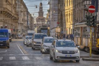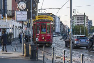 walk in foggy air city in ravenna of italy.