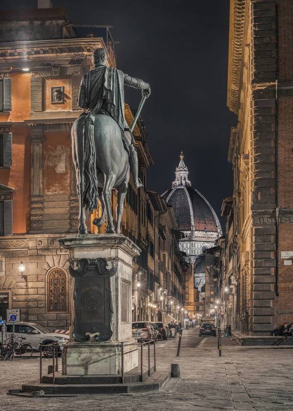 La fotografia è stata scattata durante la notte in Piazza SS Annunziata a Firenze.