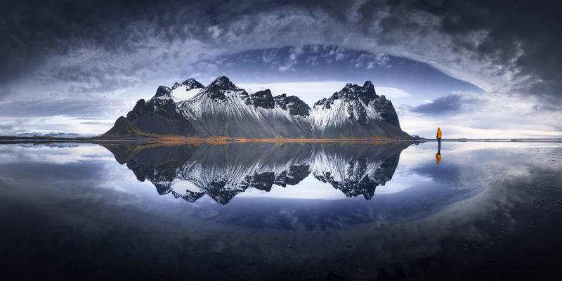 catching Vestrahorn in Iceland is always an exciting experience. In the photo, a unique visual spectacle opens up: the majesty of the mountain is reflected in the tide, creating an extraordinary atmosphere.