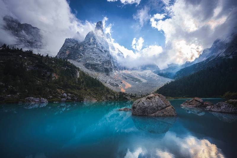 Una cornice suggestiva per un posto unico al mondo. Le tre Cime di Lavaredo e le sue grotte.