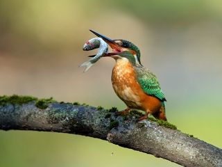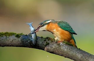очень тщательно ее приготовить. Молодая самочка зимородка поймала рыбешку, которая немногим меньше ее самой. Очень долго ее обстукивала о присаду многократно подбрасывала для более удобного хвата. После употребления рыбного блюда долго