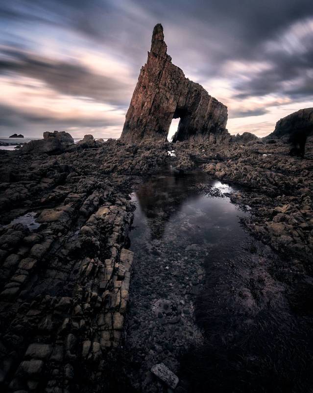 However, this time, I sought to add a unique touch to the scene. Instead of positioning the lighthouse at the center, I chose to frame a powerful and captivating foreground that mirrored the beauty of the celestial arc. By exploring the rugged cliffs surrounding the lighthouse, I discovered captivating rocks that added strength and depth to the composition.