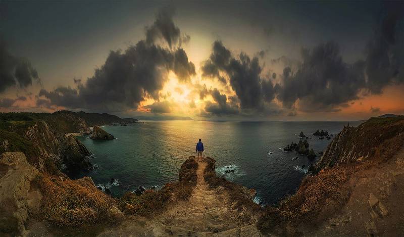 Panorámica realizada al atardecer en el mirador de Loiba, en el municipio de Ortigueira y provincia de La Coruña (Galicia-España) con cámara Fujifilm XA2 y objetivo Samyang 12 mm.