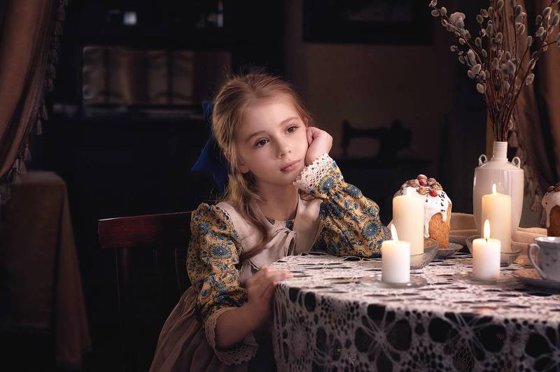Это лишь одна из картин в этой серии. Фото девушки с балета, символизирующей детскую непосредственность, вы найдете на моем сайте. Следующее фото - портрет беременной девушки, также в интерпретации иконной живописи. Снимок \"Жизнь, кормление и гордость\" третий в серии. Над четвертым работа еще в процессе. Это будет портрет женских рук, очень старых женских рук. Я представлю его, как только удастся найти подходящую модель.