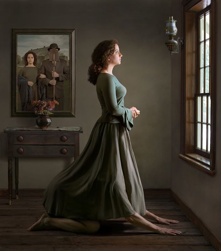 It was hovering around freezing and very windy as I set up my camera on a tripod and put it on a timer. I ran back and forth laying and sitting in front of the tv in different ways until I got this photo. Later in photoshop I touched out the extension cord.