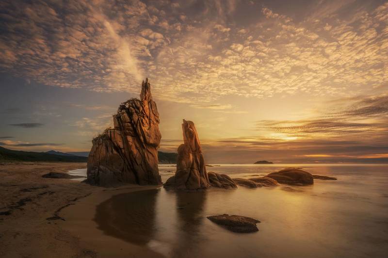 This shot immortalized at the exact moment the tide was going out offers a natural spectacle. I tried to capture the enchantment of this moment, in which the power of the mountain merges with the serenity of the sea in a single image.