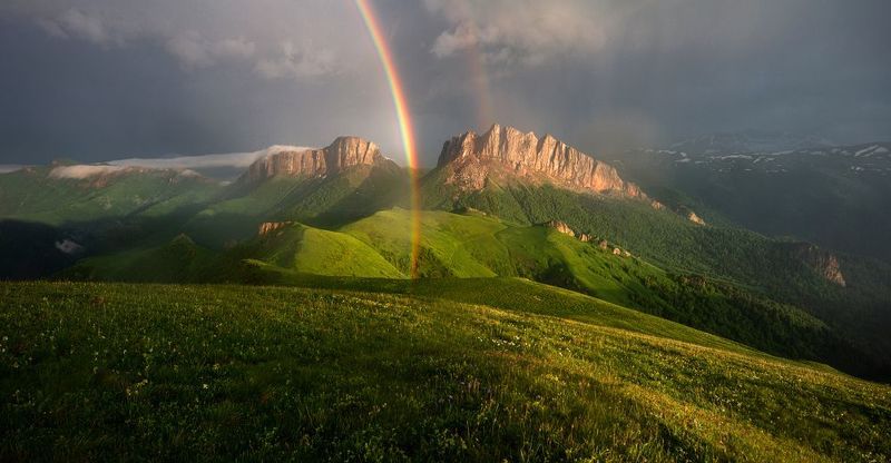 Горный массив Чёртовы ворота образуют горы Западный Ачешбок и Восточный Ачешбок. После сильного ливня, появилась радуга, вонзившаяся одним концом прямиком в Чёртовы ворота