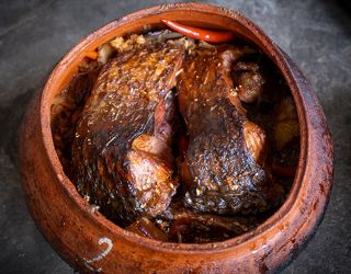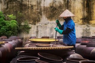 Explore the authentic process of fish braising in Vu Dai Village, where every step honors the heritage of this culinary treasure. Raw materials must be selected from the freshest fish, caught on the same day. Fish must be cooked in a clay pot. Firewood to braise fish must also be longan wood, because longan wood has the ability to eliminate fishy odors and create a very good fragrance. Besides, how to marinate fish also requires preparing all kinds of different spices such as galangal, ginger, lemon, crab juice, onions, pepper, fresh chili, bone broth,... A pot of braised fish will be braised for 18 to 20 hours in a terracotta pot. During the processing process, the chef must constantly watch to keep the pot temperature at a standard level, ensuring the fish stock does not dry out. Before cooking, each pot of braised fish will be placed with a layer of thinly sliced galangal at the bottom of the pot, then during the cooking process, add some other spices to suit the weight of each pot.