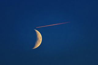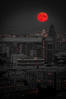 Moon in the city landscape of St. Petersburg