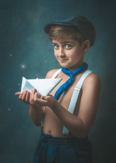 La fotografía evoca una serie de emociones y simbolismos. La actitud desafiante de la niña, combinada con su mirada intensa y el movimiento de su cabello, representa la fuerza, la libertad y la audacia inherentes a la infancia. Hay una sensación de independencia y resiliencia en su postura, que desafía las expectativas típicas de fragilidad asociadas con la niñez. La imagen es poderosa y conmovedora, capturando un momento de pureza y fuerza. La combinación de la mirada desafiante, el viento que mueve su cabello y la firmeza de su postura crean una imagen memorable y llena de carácter. La fotografía invita al espectador a reflexionar sobre la determinación y la energía que pueden residir en una niña pequeña.
