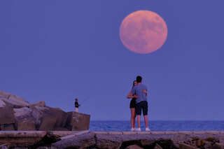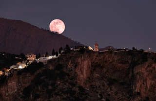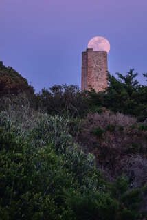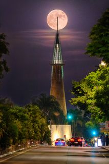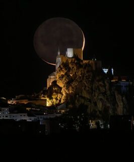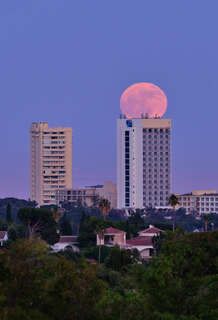 Salida de la luna llena de Septiembre de 2024, alineada con la Sagrada Familia y la Torre Glories. La foto está hecha a 2,8 km de distancia de la Sagrada Familia y a 4 km de la Torre Glories. Se trata de una única toma.