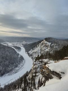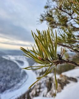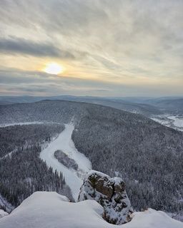 Национальный парк \"Красноярские Столбы\". Скала \"Манская Стенка\" находится в низине, и на закате наступает момент, года тень от ближайшего горного хребта закрывает её большую часть, оставив вечерним лучам солнца освещать только вершину.