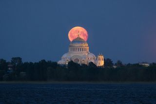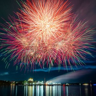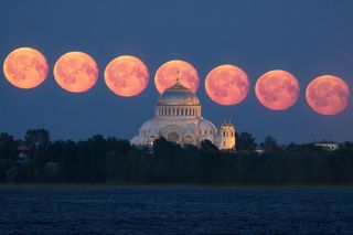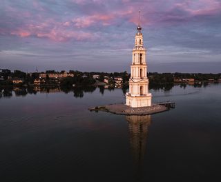Колокольня Никольского собора в Калязине от заката до рассвета