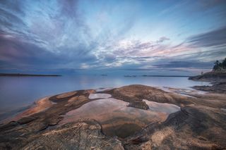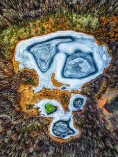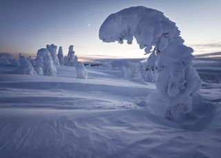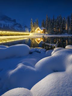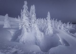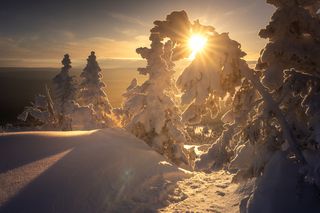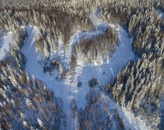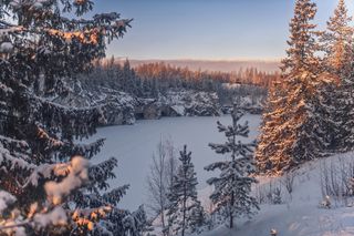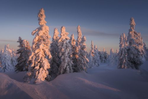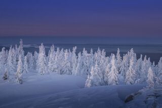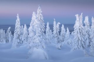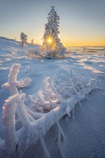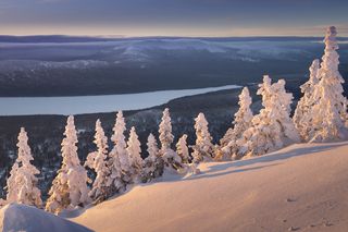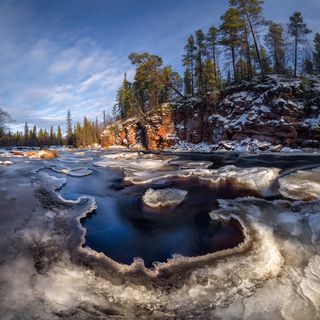 Снег и лед сковывает северный лес и создает живописные виды вдоль небольших порожистых речушек. Ночью, в свете Авроры они начинают играть изумрудными и лиловыми красками, отражаясь в темной воде.