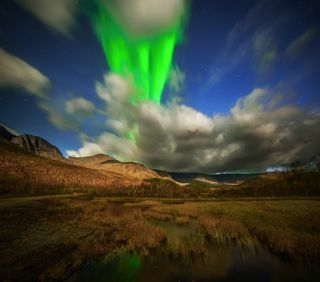 Мое путешествие в Хибины. В этот день мы нагулявшись в сильный ветер по горам, решили отправится домой, так как был уже поздний вечер. Но взглянув на прогноз северного сияния, который обещал все же быть, снова отправились на фотсъёмку в горы, даже не отдохнув. Приехав на озеро Малый Вудьявр, мы обнаружили в небе яркую дугу. Это надо было видеть, как мы остервенело доставали фотоаппараты и штативы из рюкзаков и мчались к точке съемки. Ибо по прогнозам, сияние обещали не продолжительное . Но зато облачность должна была вот вот нагрянуть! А так ведь хотелось успеть поснимать это северное чудо природы! Сияло довольно ярко, дуга была довольно интересная - она простиралась с севера на юг во все небо тонкой полоской и даже яркая полная луна не смогла погасить изумрудную северную радугу.