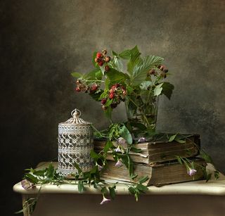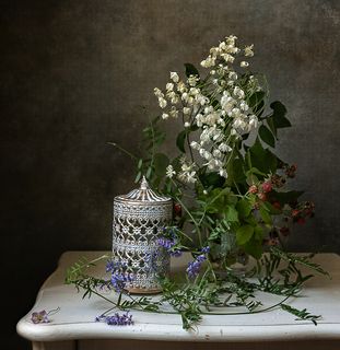 Натюрморт со скрипкой и белыми цветами.