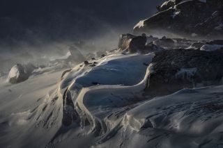 This is a series of photos taken in Patagonia - Fitz Roy and Cerro Torre. The idea is - how Man unbelivable small and weak comparing with huge Mountains.