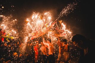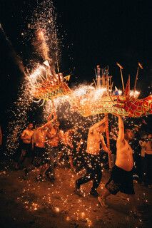 During Chinese New Year, the fire dragon dance is a spectacular tradition in certain regions of China, particularly in Guangdong and Hong Kong. Performers carry a long dragon made of straw and adorned with burning incense, weaving through the streets to the rhythm of drums and fireworks. This fiery display is believed to ward off evil spirits and bring good fortune for the coming year. The combination of glowing incense, energetic movements, and festive atmosphere makes it one of the most mesmerizing sights of the Lunar New Year celebrations.