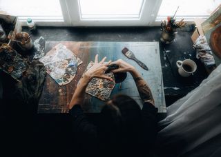 Это фотопроект длиной в год, который был посвящен подготовке к выставке художницы Татьяны Русаковой под названием «Состояния» и который в итоге вылился в собственную выставку. Получилась своеобразная рекурсия творческих взглядов двух человек. В одних случаях фотографии отсылают к представленным на выставке работам Татьяны, в других — к ее состояниям в различные моменты времени в процессе написания картин. Локациями нам служили различные творческие пространства и наши собственные квартиры. На части снимков изображена сама художница, но в 2 случаях - это мои фотографии других людей, которые послужили референтами к ее картинам. _____________ This is a year-long photo project that was dedicated to preparing for an exhibition by artist Tatiana Rusakova called "States" and which eventually resulted in its own exhibition. It turned out to be a kind of recursion of the creative views of two people. In some cases, the photographs refer to Tatiana's works presented at the exhibition, in others — to her states at various points in time during the painting process. Various creative spaces and our own apartments served as locations for us. Some of the pictures depict the artist herself, but in 2 cases they are my photographs of other people who served as references to her paintings.