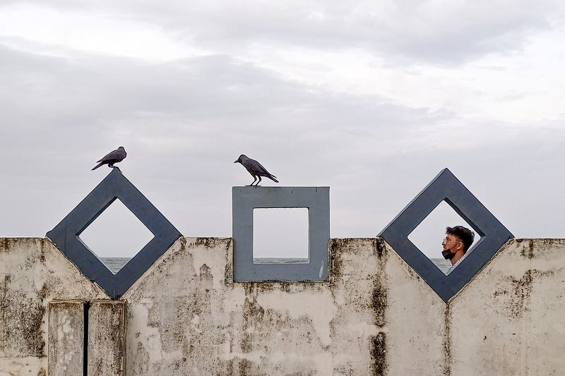 This is probably the best street photograph I have captured till now. The secret of being the best lies in the composition. This is a "Frame In A Frame In A Frame" composition. The first frame is in the shape of a trapezium formed by the legs of the dog & the second frame is the triangle formed by legs of the football player. The spherical football makes the story of the football game more perfect. Also there are a lot of geometrical shapes in this photograph. If we look at the photograph, our vision goes directly to the subject - the goalkeeper facing his back. Also we can find 3 different layers - the first layer consisting of the legs of the dog, the second layer consisting of the legs of the football players, the third layer containg the subject. I captured this moment by observing the movement of the football players along with the movement of the dog. It was a very difficult task to observe the postion of both of these elements. Then I kept on waiting for the perfect moment & finally captured this. This is captured with my smartphone - Samsung Galaxy M32.