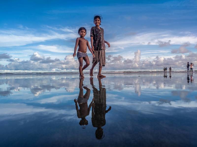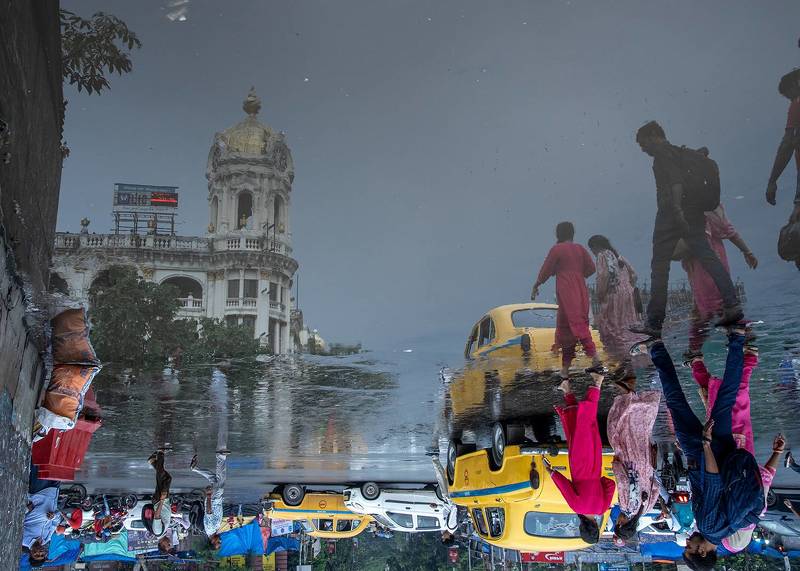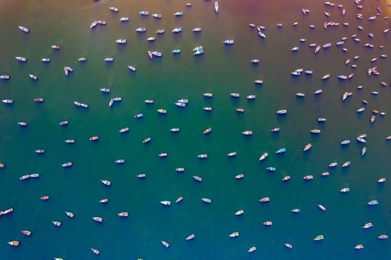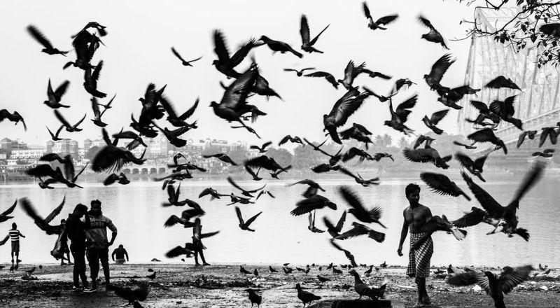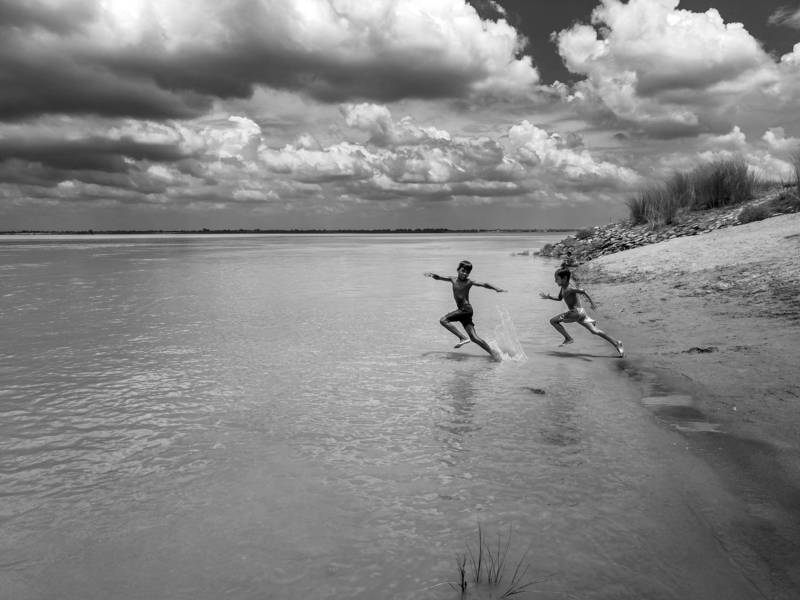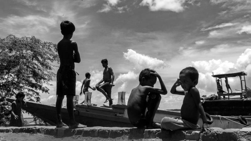 The banks of the Hooghly River in Kolkata, India, serve as a home for numerous migrant workers hailing from nearby states. This area functions as a wholesale hub, offering abundant opportunities for daily laborers. Families often settle in makeshift structures constructed from bamboo, plastic sheets, and clothes. Despite the challenging circumstances, children accompany their families. These youngsters, though deprived of many worldly comforts due to poverty, manage to find happiness in the simplest of joys. This poignant image captures such a moment, as a group of children playfully gathers on a discarded jetty. With uninhibited enthusiasm, one child is caught in mid-air, leaping from the jetty into the river, while others watch in awe. This fleeting moment encapsulates the resilience and boundless spirit of these children, who, despite their hardships, revel in the pure joy of the present.