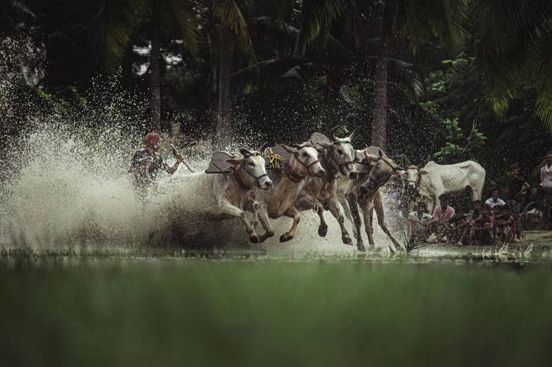 India, an agro-economy based nation, welcomes and celebrates the harvesting season as a gala. And for over decades, villages across Canning (a small town in the state West Bengal), has been fervently taking part in celebrating a unique festival that goes by the name "Moichara". The bulls taking part in Moichara are meticulously reared for this wild racing event. They are left unbridled for a frenzied run, and the men with all their might run with them till the finishing line of the race through the paddy fields filled with water and mud up to 6 inches.
