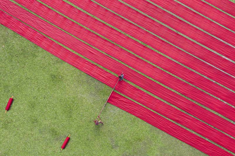Our India is an agriculture based country. Most of the rural part of India agriculture is the main source of income. And here paddy is the main grain. After cultivating the golden paddy it needs to boil and dry to maintain moisture level and preserve. This boil, dry and preservation process is done in several rice mills.After boiling workers dry it on a big ground for 3 to 4 days. And during this drying process workers create many lines and patterns on the ground by this golden paddy. Here are some of these beautiful moments of lines and patterns creations.