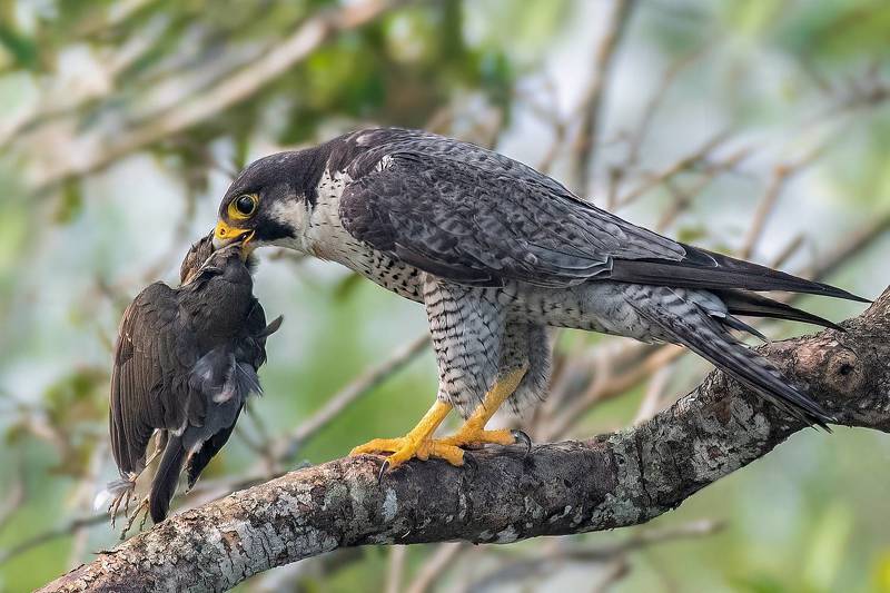 Jacobin cuckoo or pied crested cuckoo is a seasonal bird. This bird comes during the rainy season. So this bird is also called Monsoon Migrate. They eat insects, including hairy caterpillars. They hunt caterpillars or insects from nearby land. Pictured is Jacobin cuckoo eating caterpillar. The bird once shook its head while eating. At that moment the caterpillar juice formed a ring around it. This is a picture of one such moment.