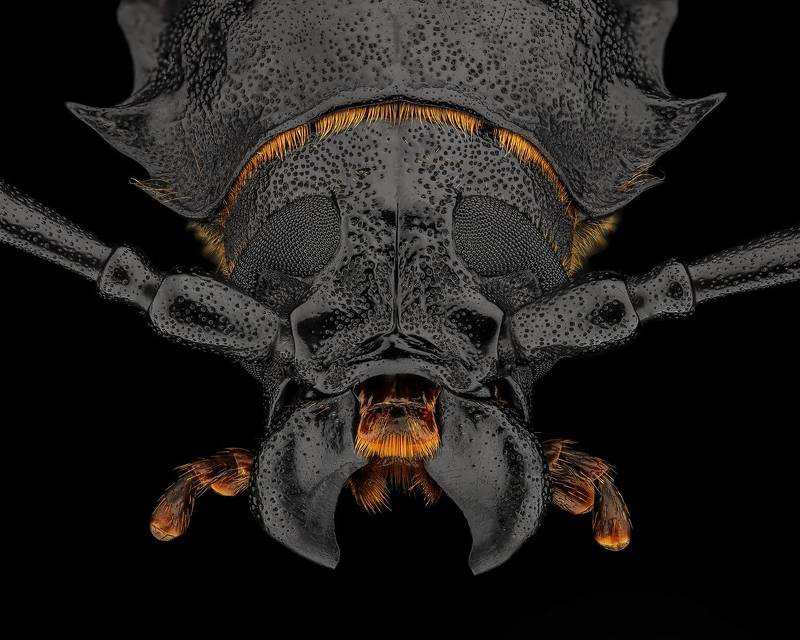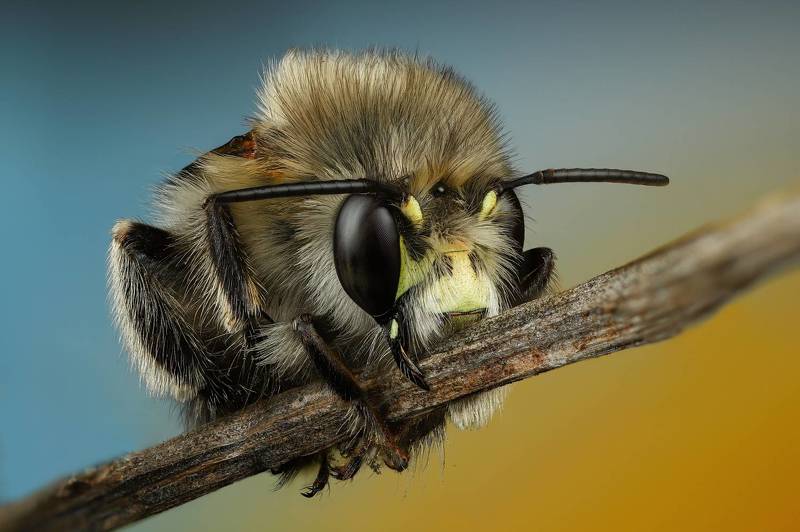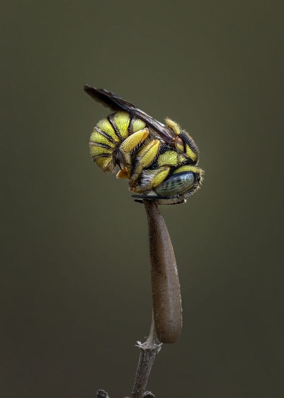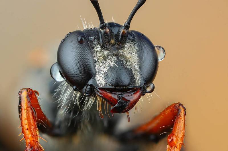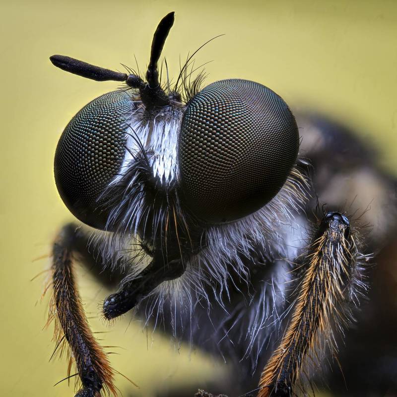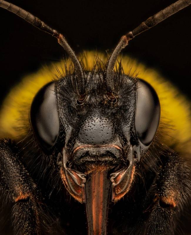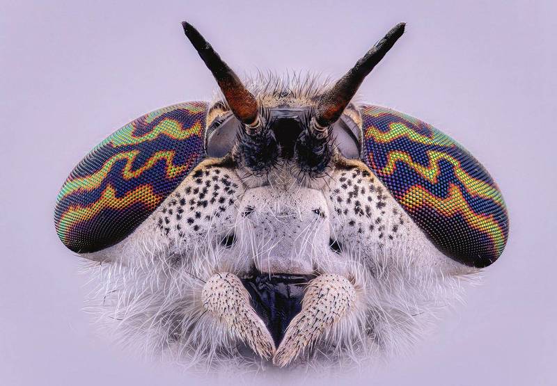 Оса блестянка. Стек 257 фотографий. Объектив Levenhuk MED 4x ( plan 4x/0.10- ). Камера Nikon d750, iso 200, 1/60