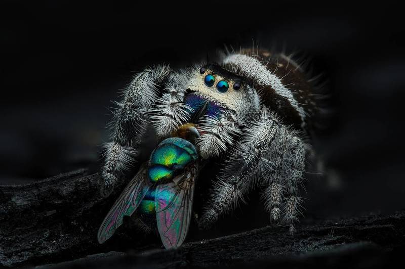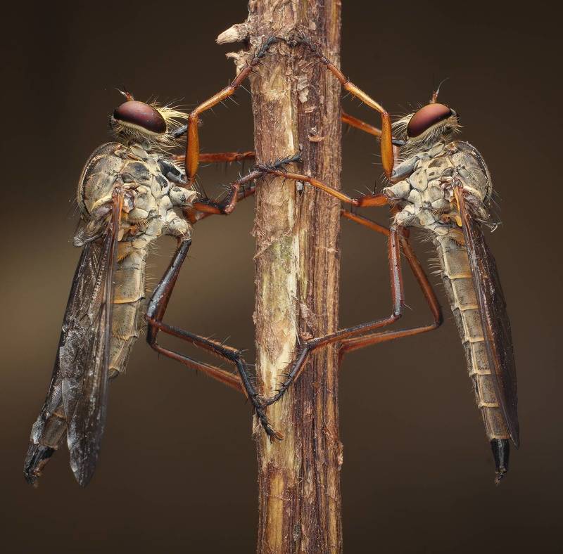This scene of a Robberfly with its prey was among the best scenes I came across on a macro walk from late last year. Robberflies are fascinating and their aerodynamic physique, meticulously designed for swift flight, precise maneuvering, and aerial insect hunting, the Robberfly exemplifies the epitome of predatory prowess.