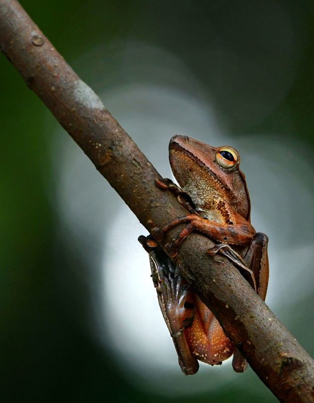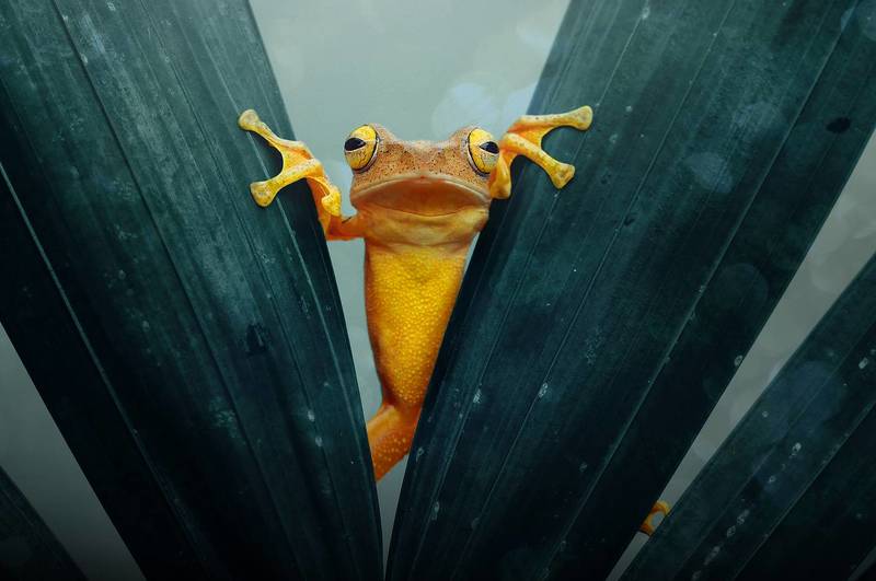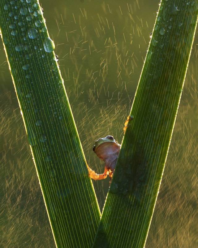 Green tree frogs are my favorite and most used model in my macro shots. Except for a few animals, all macro models do not have a distinctive facial expression. An exception to this is frogs. He is a character that we love very much, with many confused and curious facial expressions. Just like Kermit the Frog. In this collection you will find wonderful poses of frogs. Sometimes a romantic lover will say good morning to you from a branch, and sometimes he sings under the leaf umbrella in the rain.