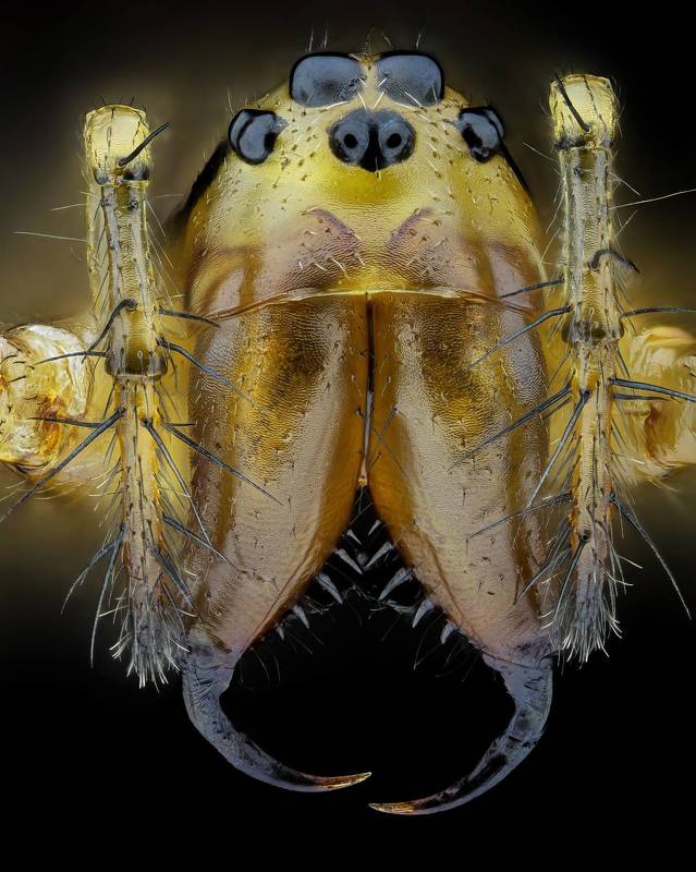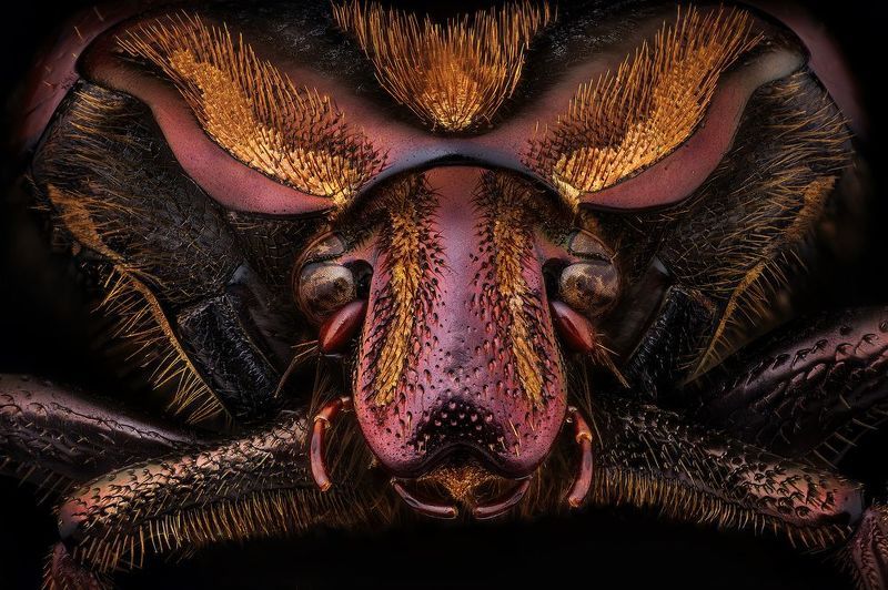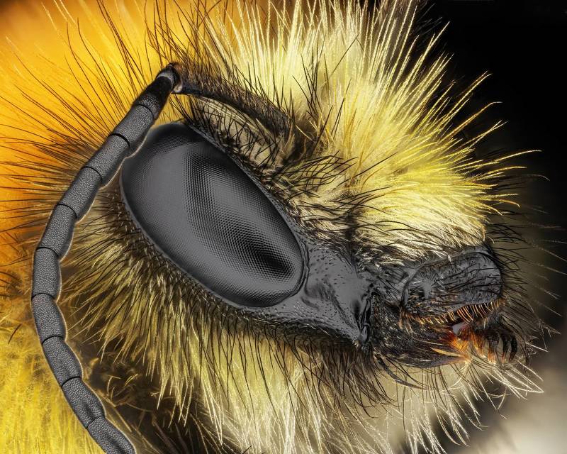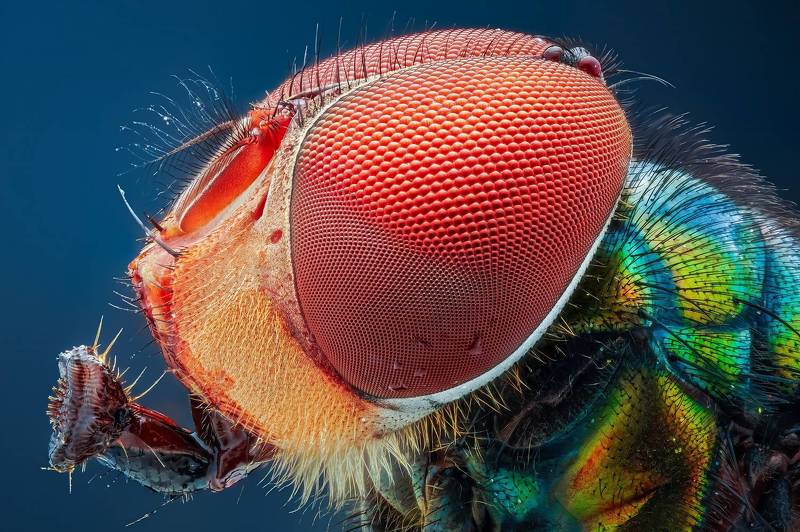 Оса блестянка. Стек 134 фотографии. Объектив Levenhuk MED 4x ( plan 4x/0.10- ). Камера Nikon d750, iso 200, 1/50