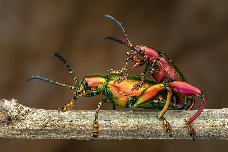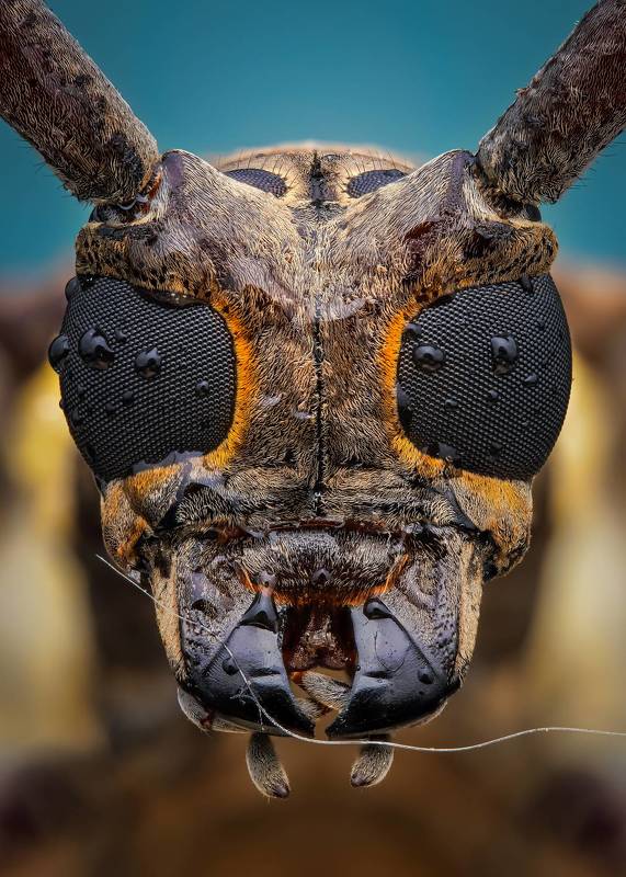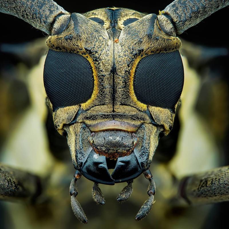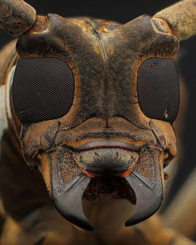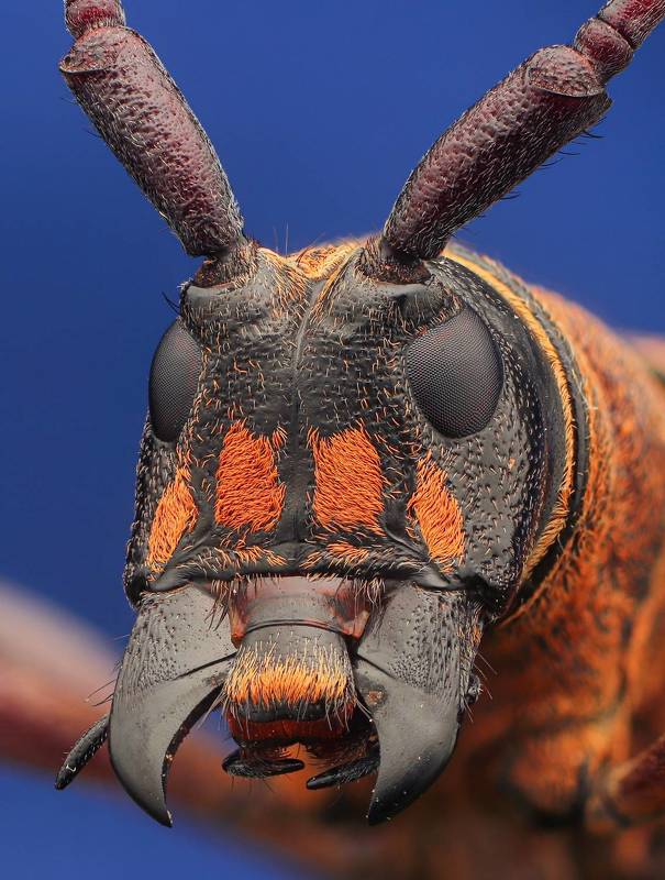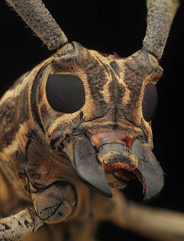 The longhorn beetle makes a surprise pose on the camera.
