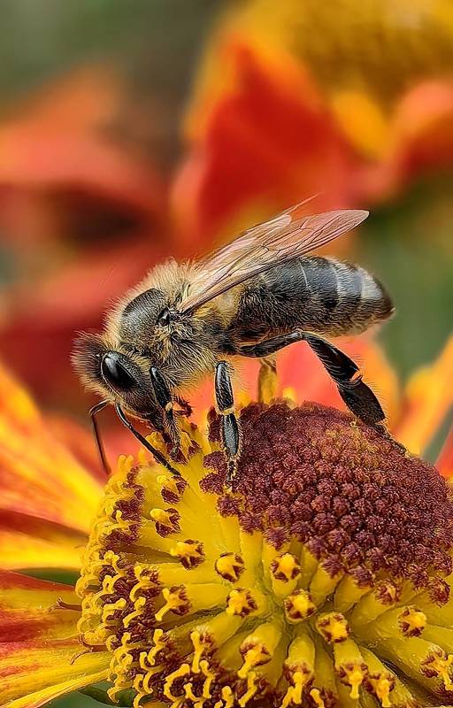 Macro photograph of a bumblebee. In the coldest hours of the afternoon they remain practically immobile. This specimen fell from a branch of an orange tree and did not have the strength to fly.