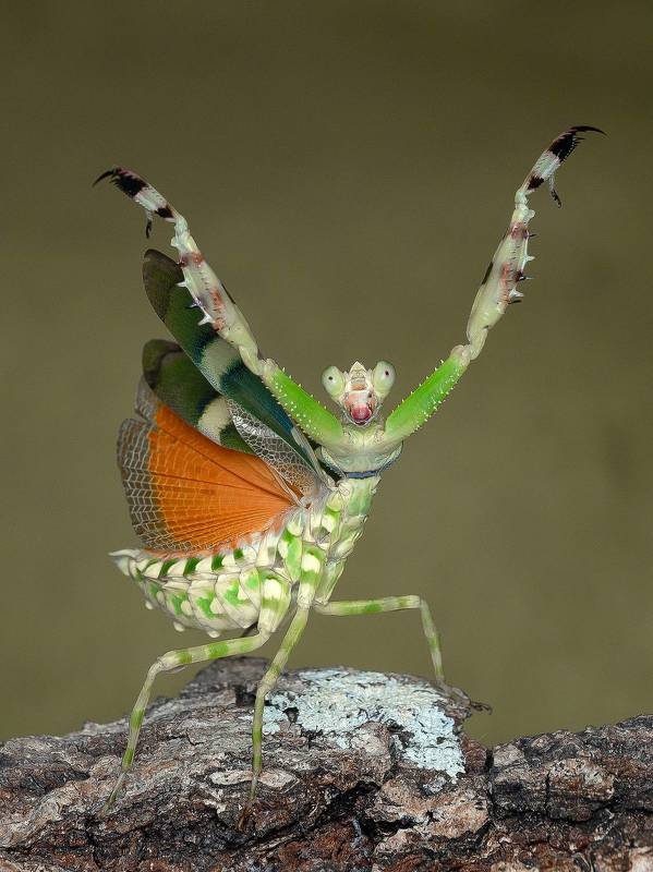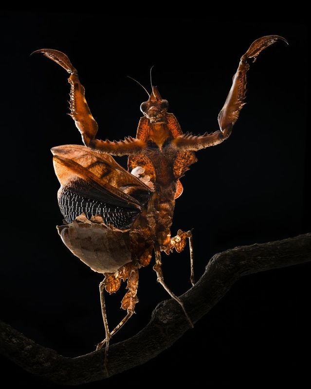 In the insect universe, there are about two thousand species of mantises, mostly residents of the warmer tropical zones. This mantis is known as the \"shield mantis\" and goes unnoticed because it disguises itself as a leaf to catch small insects such as flies, moths and crickets. This photo was taken in Sarapiqui - Costa Rica.