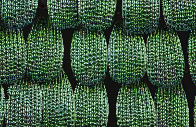 Scales on the wing of a Papilio Palinurus butterfly, country of origin: Philippines , 50x magnification , Canon EOS 90D , Raynox 150 , Nikon TU Plan ELWD 50x/0.60 , stack 60 , 2x Godox 64 led