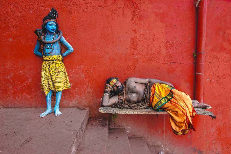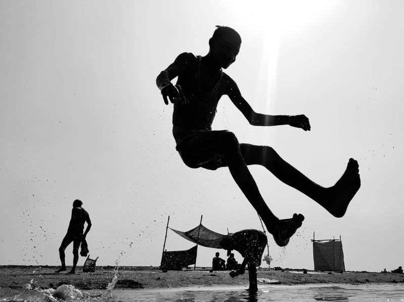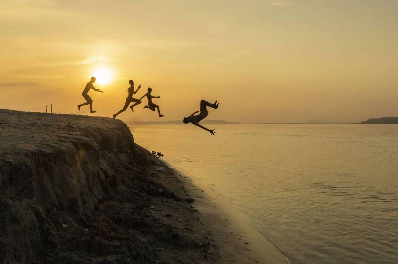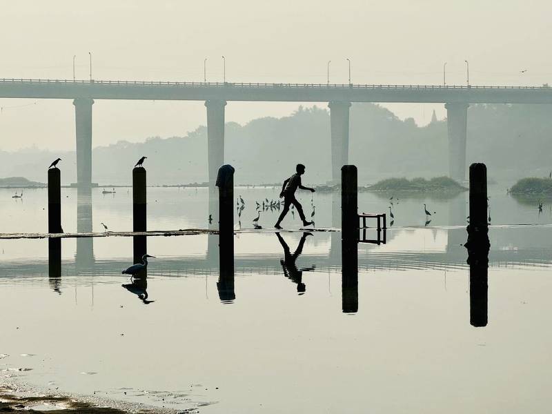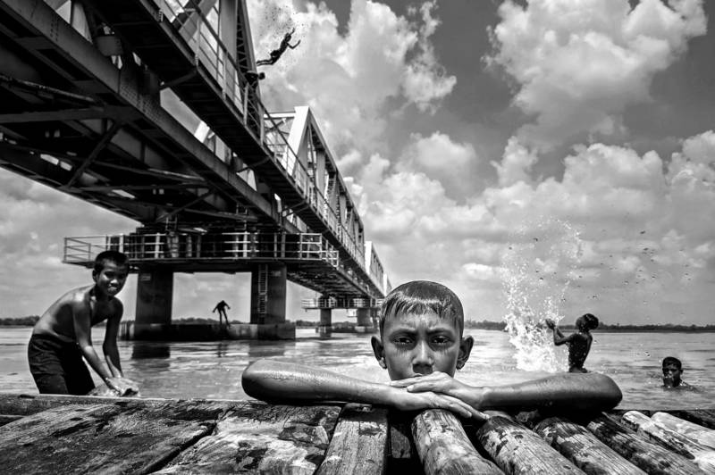 Dive Out - The ghats of Varanasi are usually full of activity. But during one of my photowalks I was able to isolate this moment where I captured this man leaping into the water, while his clothing was left out to dry. I was waiting for a moment this unique and wasted no time freezing it through my camera.
